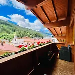 Součástí pokojů je balkón a televize společně s terasou na slunění s výhledem na hory.